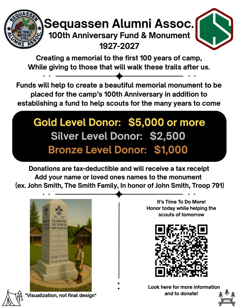 Funds will help to create a beautiful memorial monument to be placed for the camp’s 100th Anniversary in addition to establishing a fund to help scouts for the many years to come